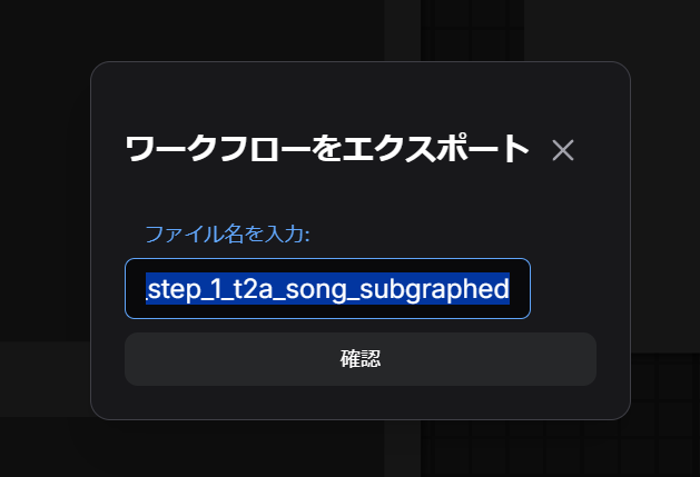利用したいワークフローを開いた状態で、UIのアイコンメニューから「ファイル」→「エクスポート (API)」を選択します。