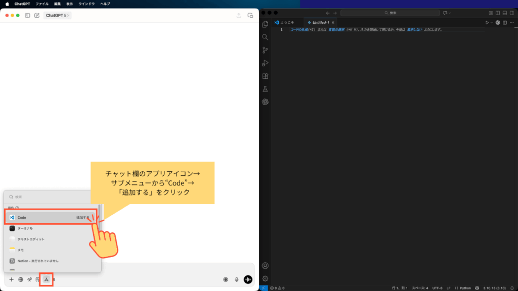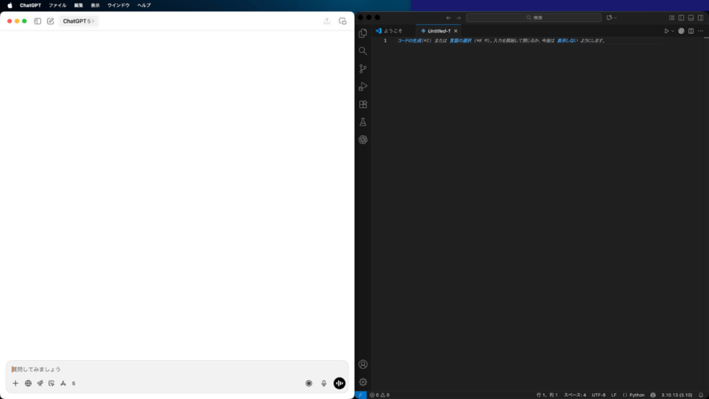 ここでは、ChatGPTのMacアプリとVSCodeを使ってPythonのコーディングを行う基本の流れを紹介します。