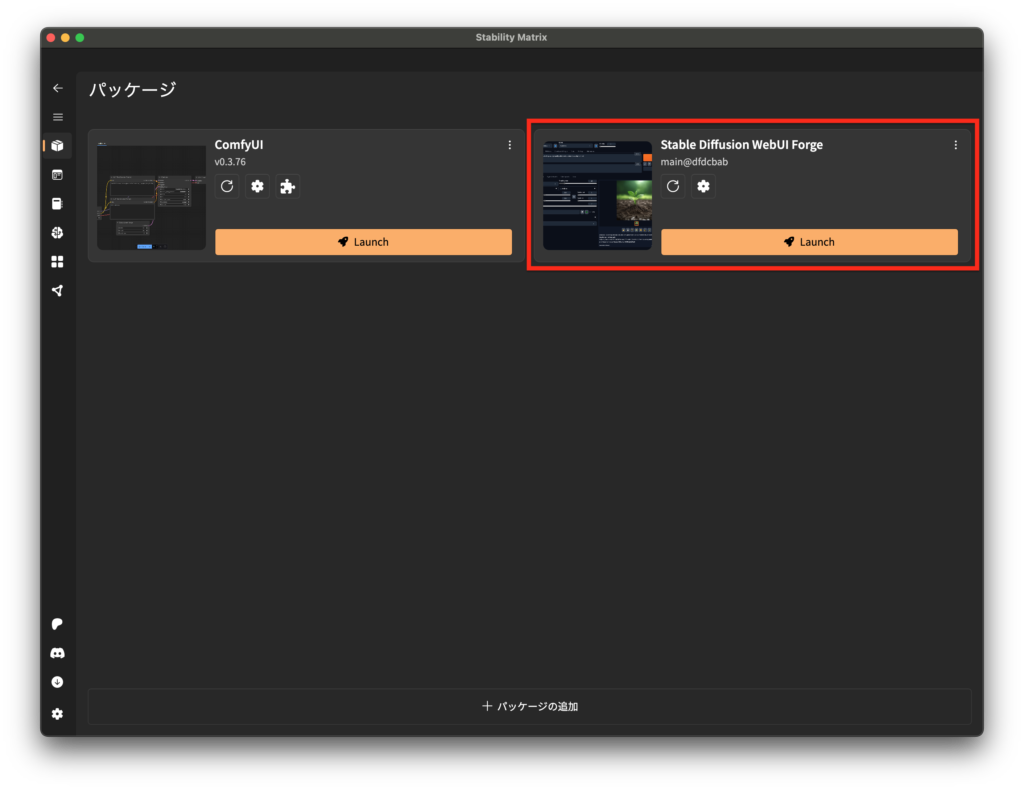 2. 「Stable Diffusion WebUI Forge」のパッケージ画面で、