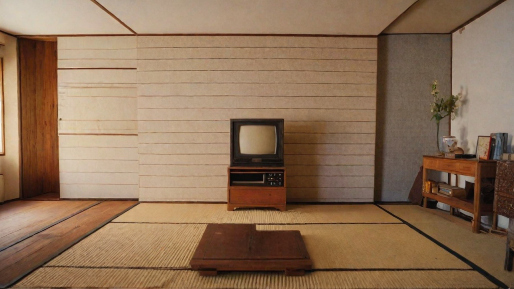 完成した動画では、誰もいない部屋に置かれたブラウン管テレビが映っています。