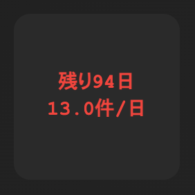 「残り日数」と、ToDoの1日あたりの消化件数をパフォーマンスの目安として表示します。